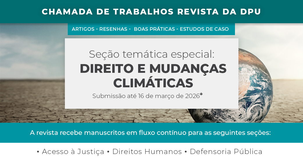 Autores podem submeter seus trabalhos em fluxo contínuo, nos temas de Acesso à Justiça, promoção dos Direitos Humanos e Defensoria Pública.